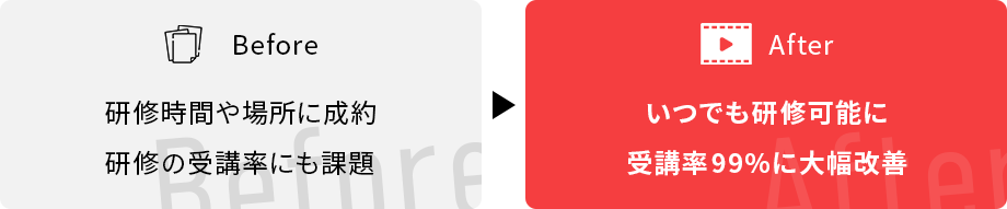 PIP-Makerを導入後、動画研修で受講率を70%から99%に改善し、受講の利便性向上とグローバル展開にも成功しました。